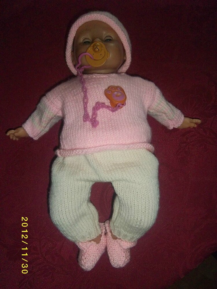 Après le petit bonnet pour un bébé préma, j'ai continuer l'ensemble et le voici au grand complet.